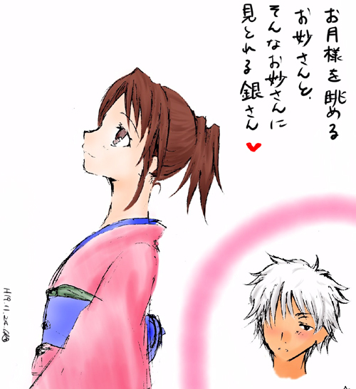 で、ついでに銀さんもちっこく描いたので、美人お妙さんに見惚れてれば良いさ! っ手な感じになりました^^;