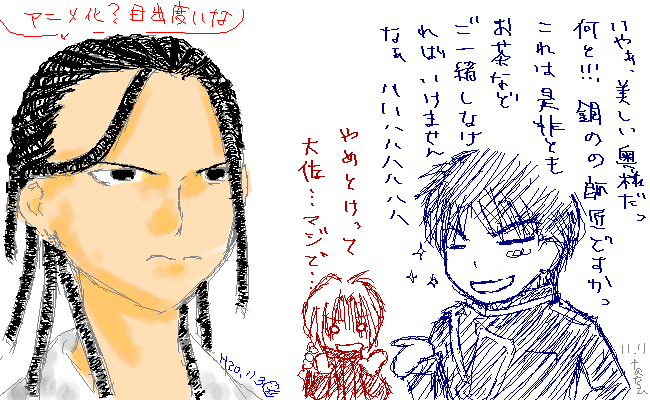 そしてそして、大佐がかなり好きなのです。 描いてて楽しい無能。 ビバ無能っ!!!★ お願いですから声優さんは全員変更なしでお願いしますっお願いしますっ(切実