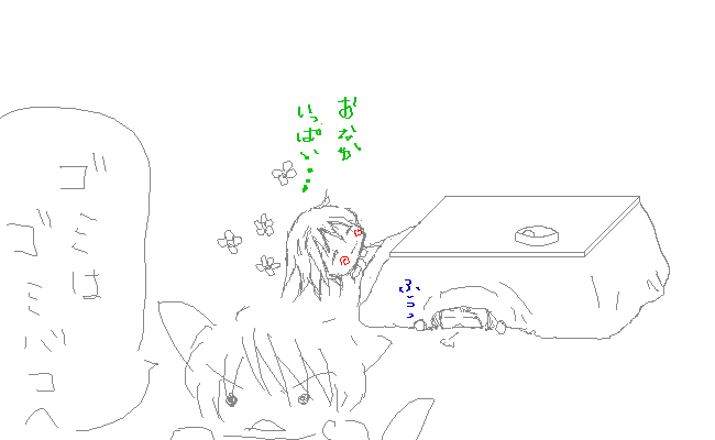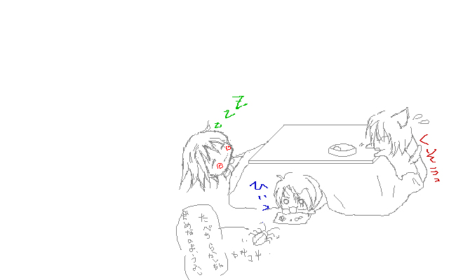 このスペースを使ってなにかできないかなーと思って1人で全画面に描いてみた。 うわぉ贅沢☆ いつもながら計画性はないですwww